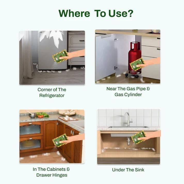 Target areas susceptible to cockroach infestation, including under sinks, behind toilets, and near appliances. This powder not only eradicates visible cockroaches but also infiltrates their hideouts, obliterating nests effectively.