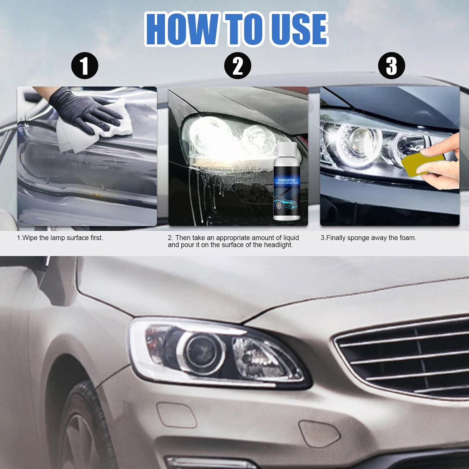 Quick and easy to use, just pour the repair fluid on the sponge and wipe, 2 minutes for car headlight refurbishment, and car headlight protection.